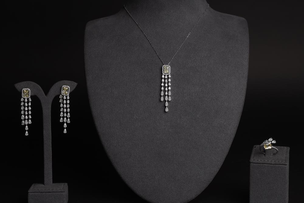 نص طقم مكون من 4 قطع فضة 925 حجر فانسي